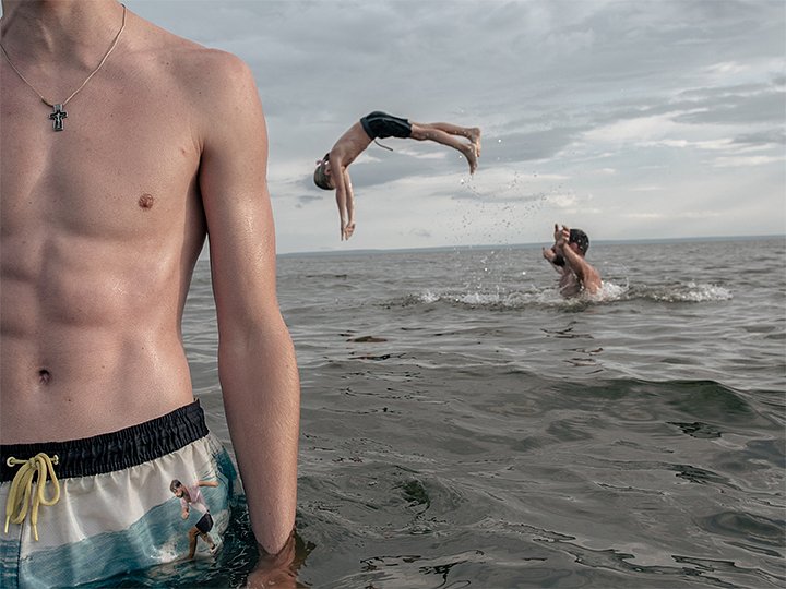 Еще один снимок о том, как поколения взрослых воспринимают тех, кто следует за ними. Старший сын автора медленно выходит из воды, оставляя за спиной беззаботное детство, полное радости и веселья. У его младшей сестры на заднем плане еще есть некоторое время на беззаботность. И она пользуется этим по полной.