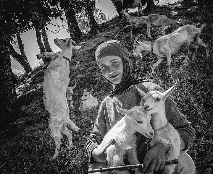 Эта работа показывает, что доброта живет в простых поступках. И пусть автор выбрал черно-белый формат с ракурсом, который может показаться даже немного тревожным, образ кормящей голубей старушки — теплый и во многом привычный. Ведь любой, кто увидит подобную сцену на улице, знает: это ее способ справиться с одиночеством, почувствовать себя нужной не только членам семьи — близким и любимым, если они вообще есть, — но и малым бессловесным тварям.