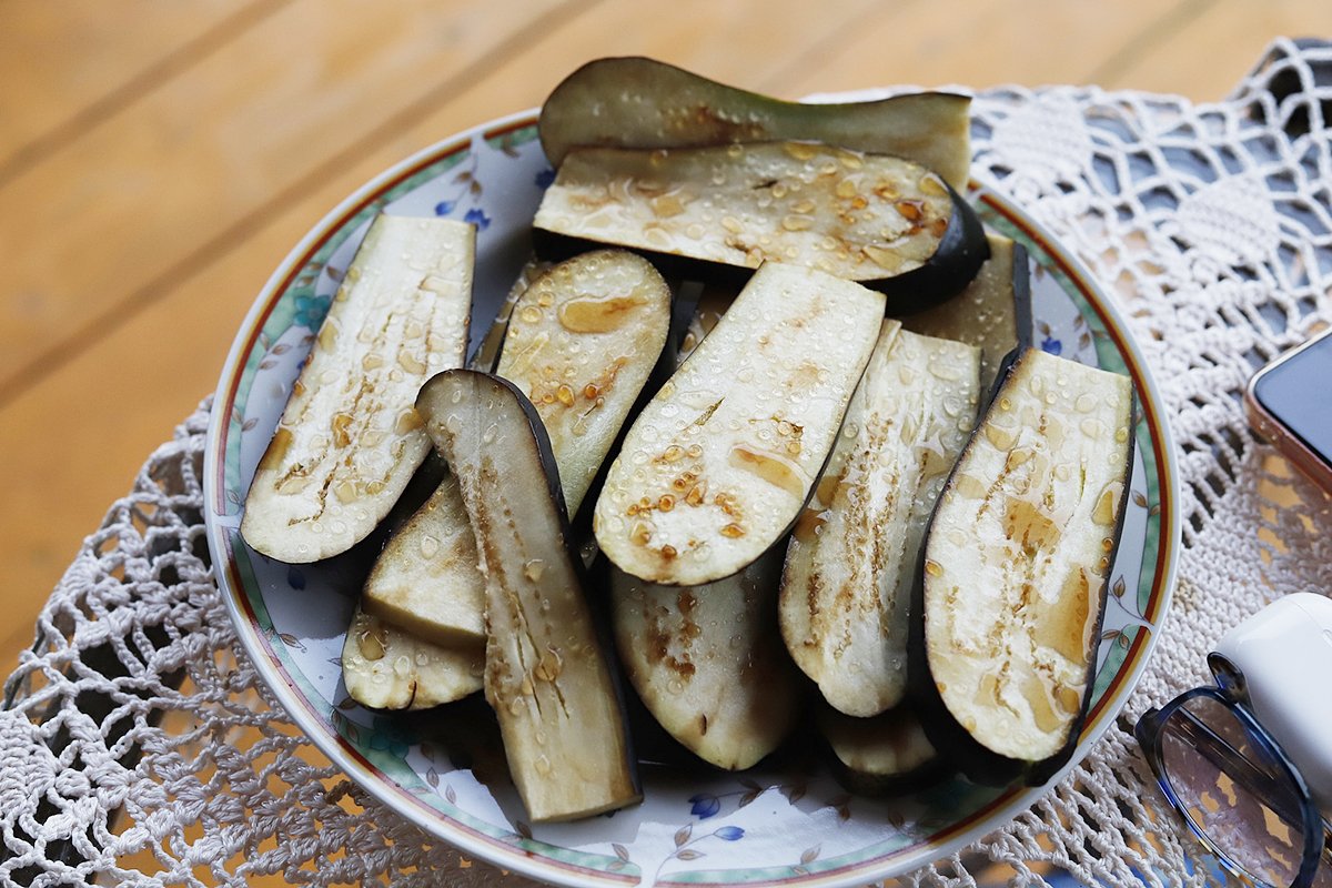 - Как только баклажаны стали мягкими, уберите пароварку или решетку с огня и дайте слайсам постоять под крышкой еще 1–2 минуты.