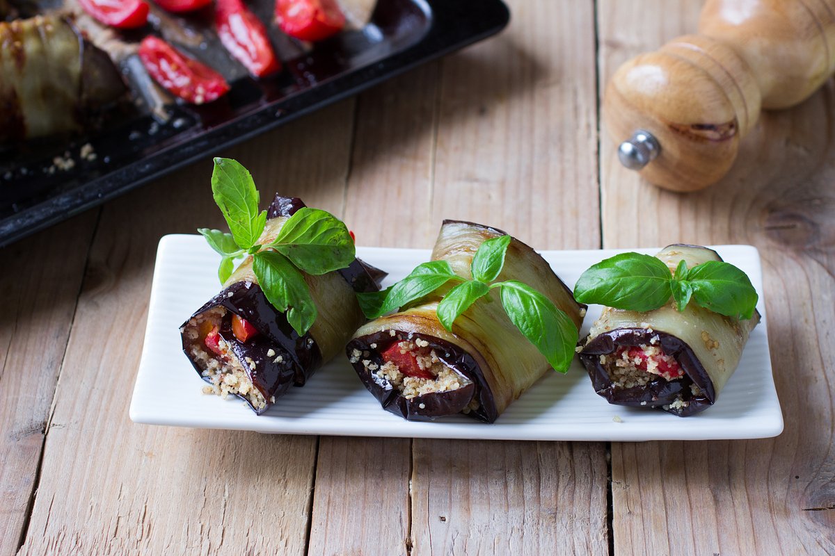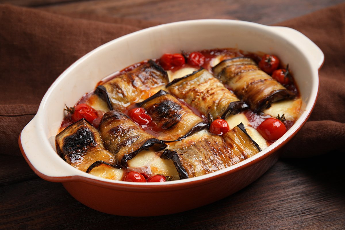 Рулетики из баклажанов с томатно‑сырной начинкой