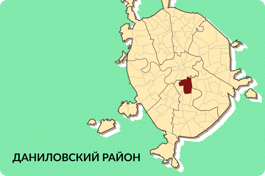 Даниловский район — южная граница ЦАО. Здесь Павелецкий вокзал, набережные Москвы‑реки и «ЗИЛАрт» — крупный современный район на месте бывшего автозавода. До Кремля — 5 километров.