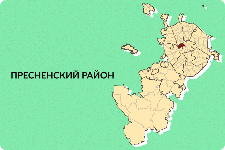 Здесь Москва-Сити, парк «Красная Пресня» и набережные Москвы-реки. Район входит в ЦАО и граничит с Садовым кольцом. По концентрации офисов, ресторанов и культурных объектов на квадратный километр — один из лидеров города.